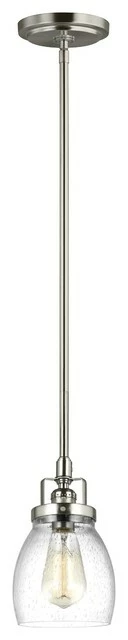 Influenced by the vintage industrial designs of early 20th Century America, the transitional Belton lighting collection by Sea Gull Lighting has Seeded glass shades that highlight the classic Edison bulbs. The collections is offered in rich Heirloom Bronze and modern Brushed Nickel finishes. The assortment includes three- and five-light chandeliers; a four-light island pendant; one-light medium pendant; one light large pendant; one-light mini pendant; and one-, two-, three- and four-light bath fixtures. Incandescent medium-base lamping.