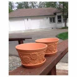 Goodmanandwife Raised Sunflower Embellished Natural Terracotta Garden Pot With Tray, Set Of 2