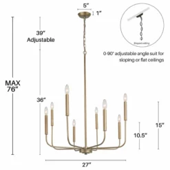 LNC Lighting LNC 8-Light Antique Gold Modern And Contemporary Linear Chaderlier 36″H