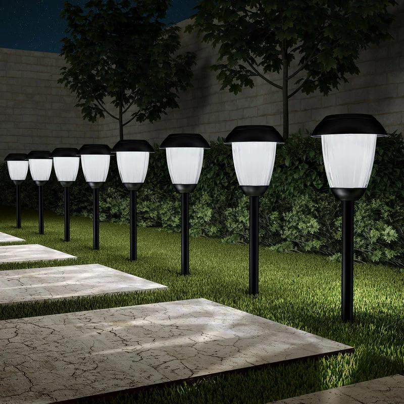 The Set of 8 Solar Path Lights by Pure Garden provide delightful accent lighting and make a wonderful addition to any yard or pathway. The solar light soaks up the sun’s energy during the day and automatically turn on at dusk for hassle-free illumination. The lights feature a high capacity and rechargeable 1 AA 1.2V 600 mAh – Ni-MH battery that provides long lasting, quality performance. The pathway lights are durable and weather resistant, so they can be used in multiple seasons instead of just warm summer nights. Each light can provide up to 6 hours of cool white light, making them a practical and stylish solution for any garden, walkway, path, patio, driveway, landscape, and more!