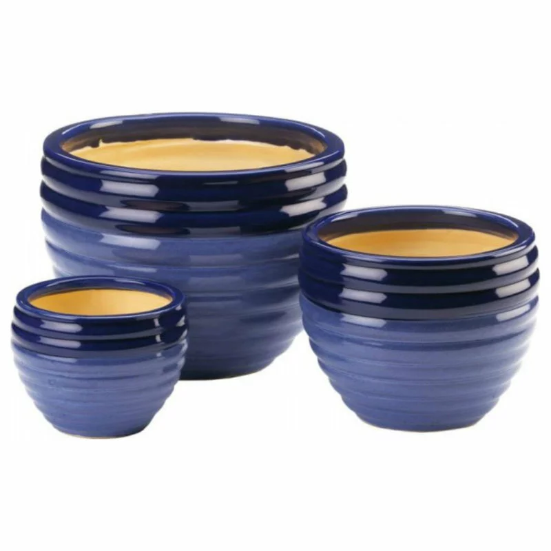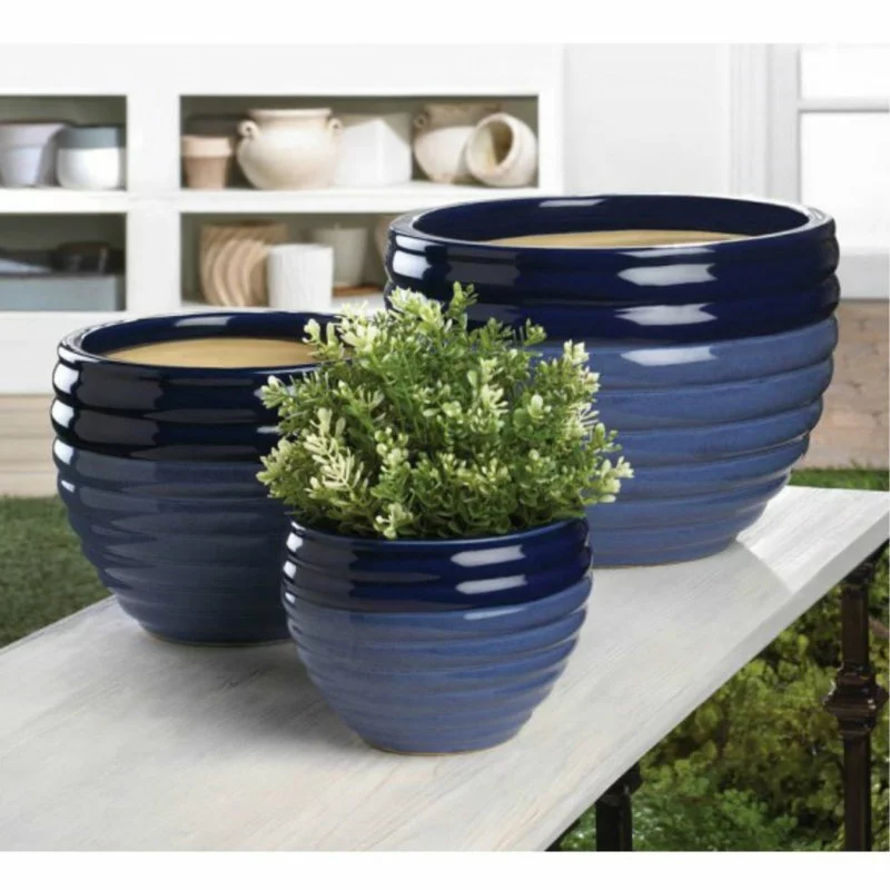 Two-Tone Blue Ceramic Planter SetThis beautiful set of ceramic planters includes three pots of various sizes in a serene two-tone blue finish. Plants not included. This beautiful set of ceramic planters includes three pots of various sizes in a serene two-tone blue finish. Plants not included.
