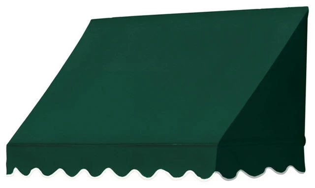This Traditional Awning features scalloped edges with white piping. Make sure the size awning you order is a minimum of 3 to 4 inches larger in width than the size of the opening you are covering. This ensures a proper fit. 3 sizes and 6 colors to choose from.
