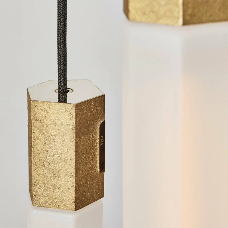 Evoking nature’s magnitude, the Basalt Triple Pendant by Tala is a unique and dramatic ceiling light inspired by the thousands of extruded basalt columns that make up Giant’s Causeway in Northern Ireland. Combining three Brass pendants with three translucent mouth-blown borosilicate glass bulbs, this statement ceiling light is defined by its irregular hexagonal shape, textured and polished metal finishes and dimmable LED technology.