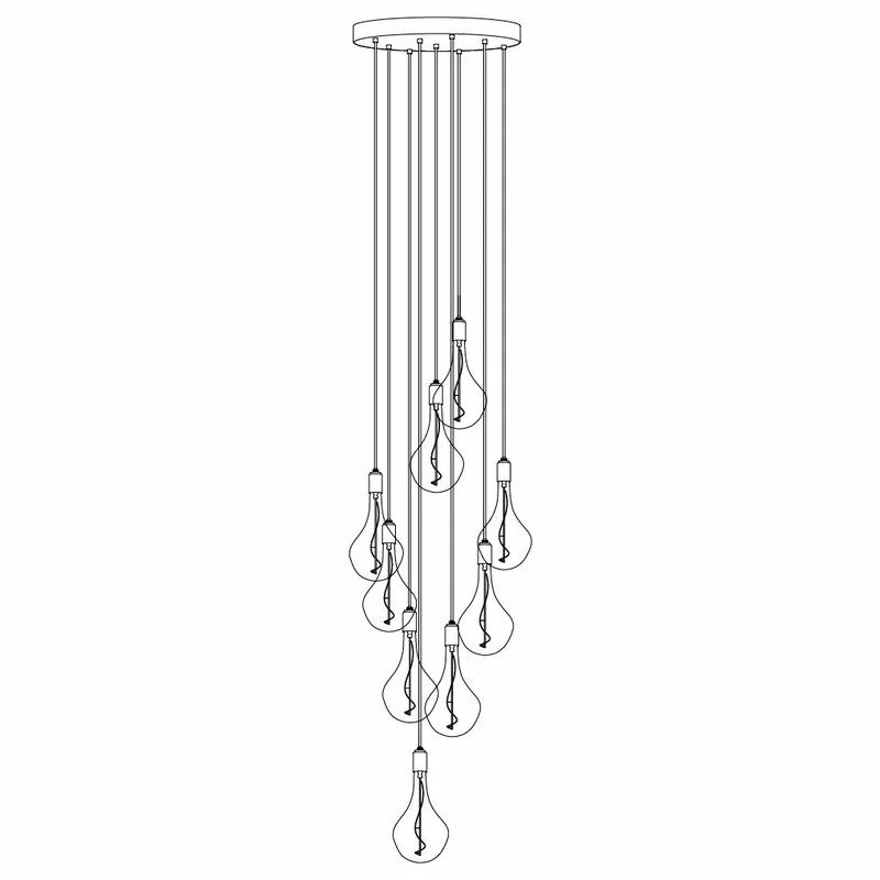 The Graphite Nine Pendant by Tala is an impressive lighting system designed for maximum impact. Encased in a large black circular canopy, a broad Black Ash disc and nine Graphite grips form a practical yet attractive base to hang nine Graphite pendants at varying lengths, creating a spectacular lighting display.