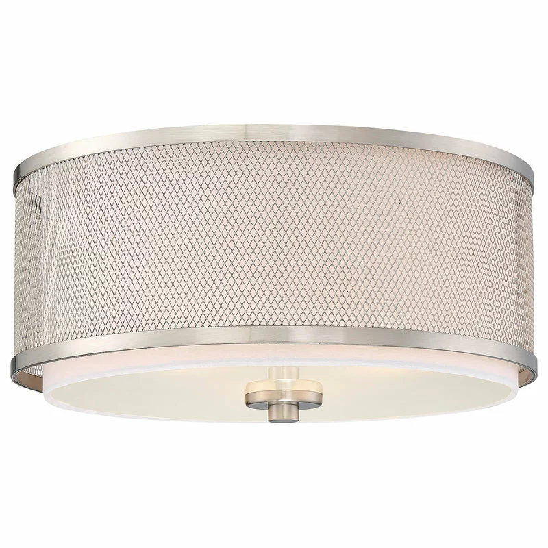 Bring iconic industrial style to your home with the chic Trade Winds Fremont 3-light flush mount ceiling light. A shade of intricate mesh encircles the white fabric shade, diffusing the light dramatically and adding heightened eye-catching texture. Plus, a glass diffuser at the bottom of the fixture ensures you won’t get glare if you look up into the light. Finished in brushed nickel. Because of Fremont’s close-to-ceiling design, it’s ideal for lighting up many different spaces, including smaller rooms. This fixture is dimmable and uses 3 standard size light bulbs of up to 60 watts each. LED bulbs can be used. Rated for indoor use only. This light requires 3 , 60W Watt Bulbs (Not Included) UL Certified.