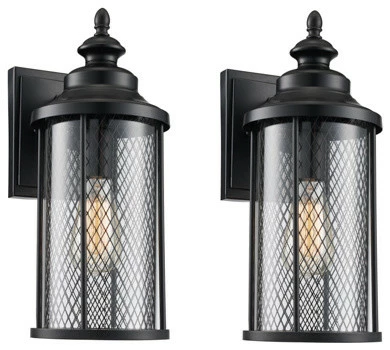 The Stewart Collection showcases any outdoor living space with both style and functionality. The durable craftsmanship is inspired by Industrial design themes and maintains a distinctive look as it provides accent and area lighting. A single down-light provides adequate illumination. The fixture features a mesh shade that is paired with Clear Glass. A tiered roof with finial detail at the top adds to the distinctive look of this fixture.