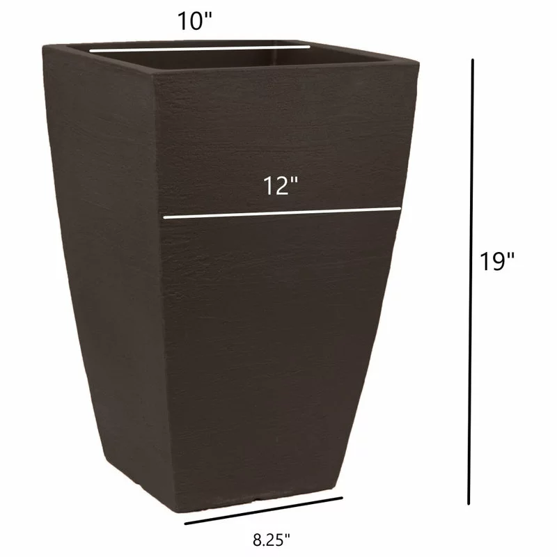 The fresh design of the Tall Modern Square Planter provides a great touch of character to your outdoor space with an all-over textured finish. Square tapered planters can offer a more unique feel to a modern design. The rounded edge of the planter softens a space, and guides eyes up to the plant. The polyethylene material makes these planters light and easy to move, but durable enough for long-time indoor or outdoor use. Proudly Made in the USA- Tusco Products is proud to manufacture all of its garden planters right here in the USA.