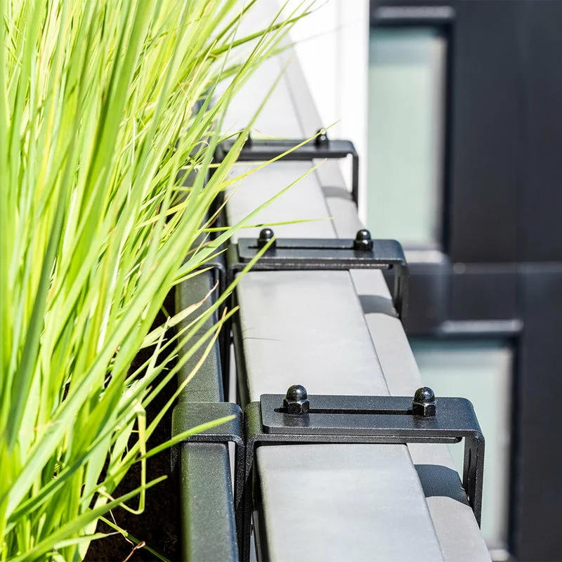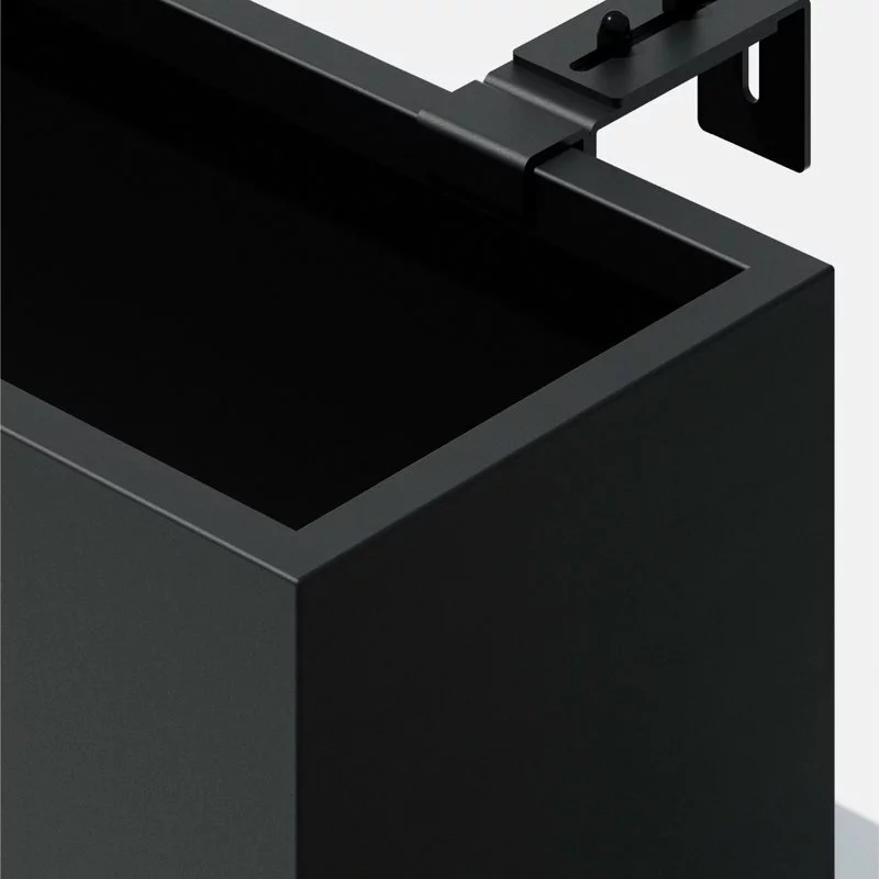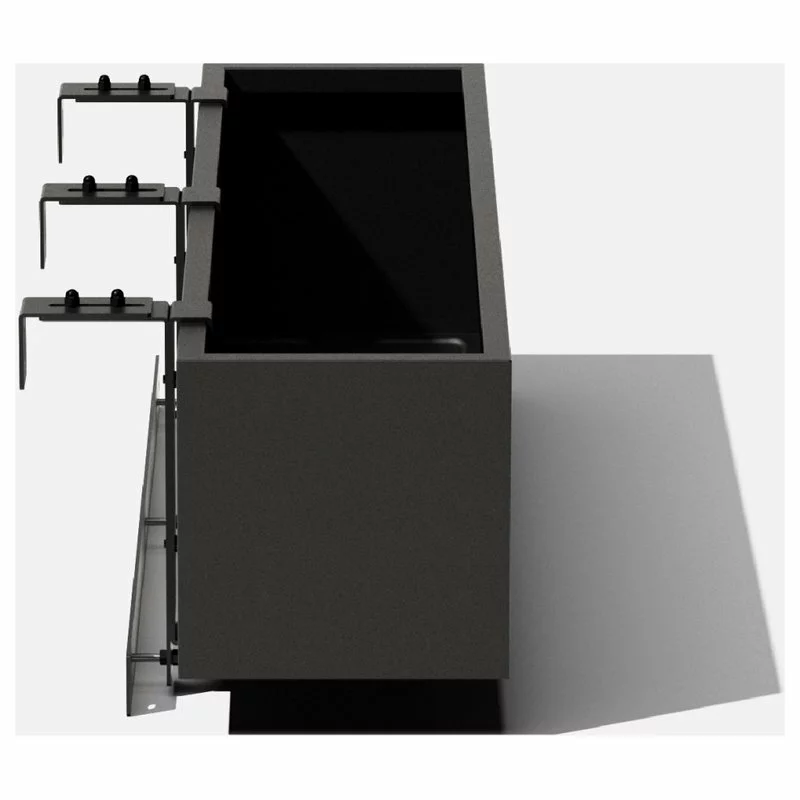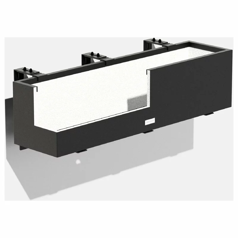 The small, black Metallic Series Railing Steel Planter is an attractive, versatile piece. Made from galvanized steel, this piece has built-in brackets to help you fit it to a balcony or deck railing. Its modern trough design is finished with a UV-resistant powder coat. Styrofoam insulation helps protect your plants’ roots in the summer and winter.