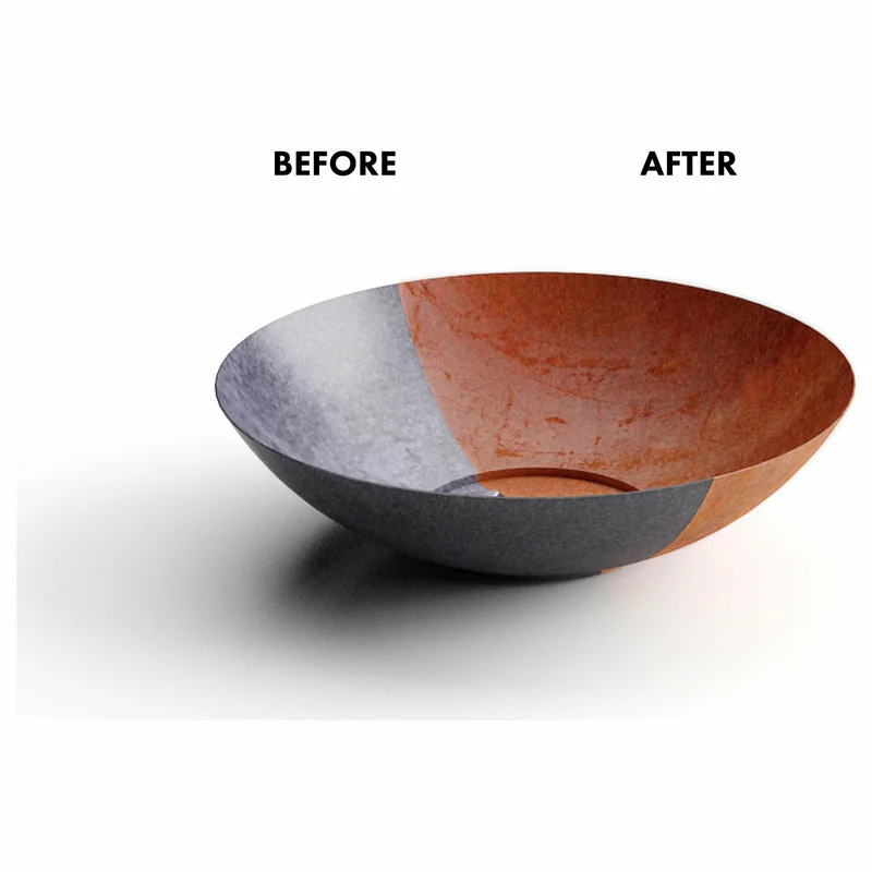 - Corten steel base only exhibits surface rust for aesthetic purposes