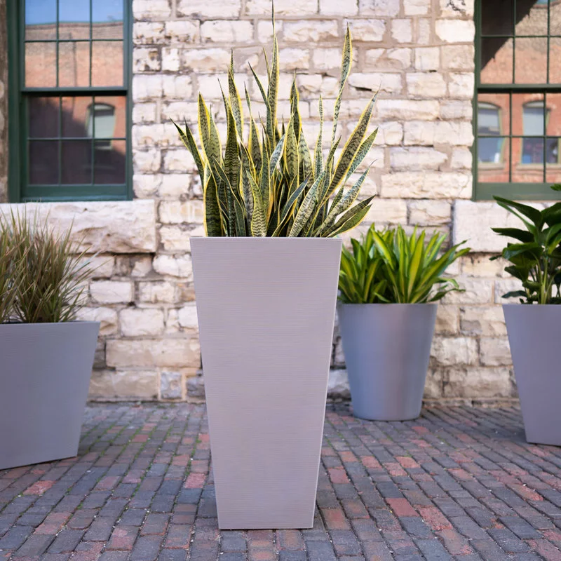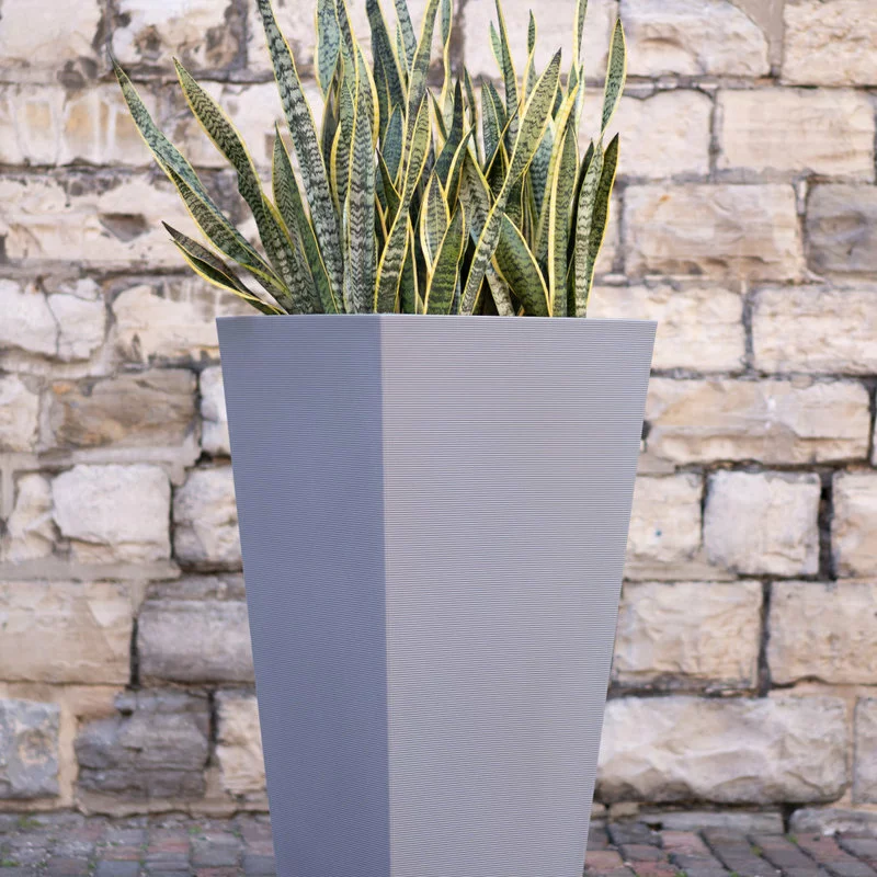 Tall and distinctive, the Pro Series Column Grooved Planter is the perfect addition to any front entrance or poolside patio. It’s characterized by a grooved finish and sleek tapered square design and is ideally suited to make an impact outside of your modern home. Molded from an extremely durable plastic and able to withstand all the extremes weather can bring, the Pro Series Column Grooved Planter looks good all year long.