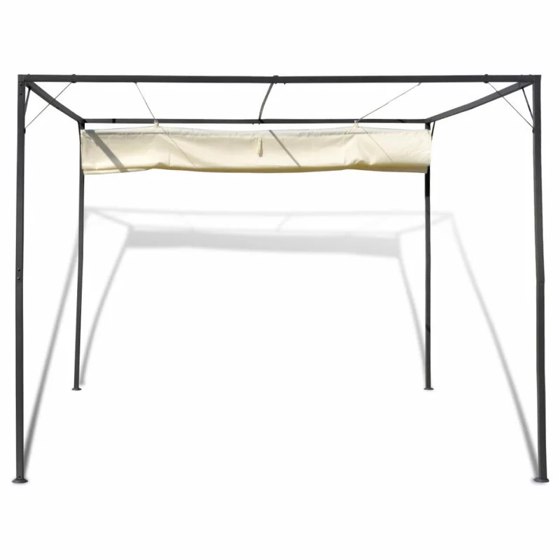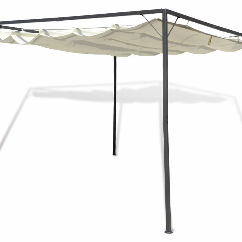 With this gazebo you and your family can enjoy any social gathering and remain sheltered from the elements. This gazebo is suitable for multiple types of weather; its retractable roof protects you from harmful UV rays and also from the rain. This gazebo is manufactured with a powder-coated metal frame and a 100% Polyester water-resistant cover. NOTE: This product should NEVER be used under bad weather, such as strong wind, heavy rain, snow, storm, etc.