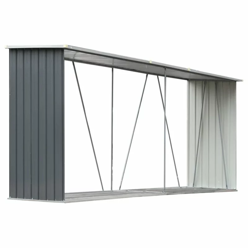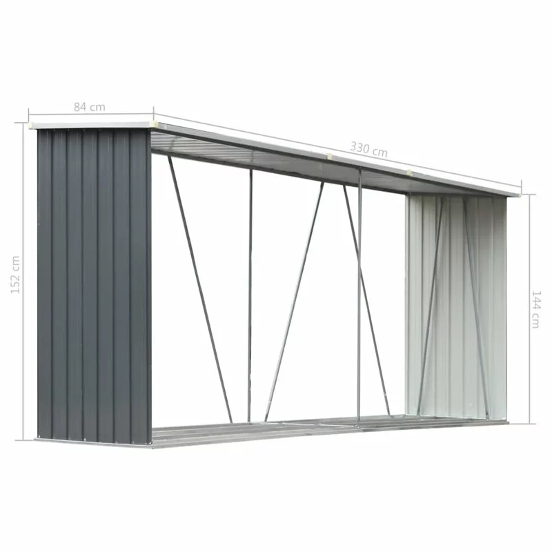 This log storage shed presents a great storage solution for firewood. It has a stable construction with steel support bars and extra tubes on both sides. As it is made of galvanized steel, the firewood storage shed requires minimal maintenance and is very durable. This log store includes a steel floor frame for added stability and raised floor slats to keep the logs ventilated and dry. Rainwater will automatically be drained from the roof thanks to its sloping design. Our firewood shed is easy to assemble. Keep your fire logs organized, stacked and aired with this solid and compact log storage shed!