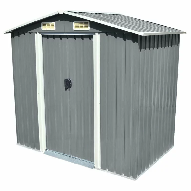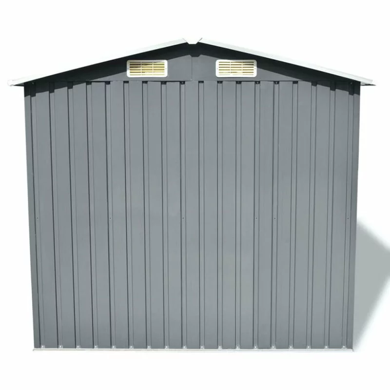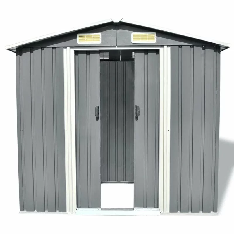 This metal storage shed will be perfect for storing a wide variety of tools and equipment. This storage shed has 4 vents, 2 in the front and 2 in the rear, ensuring excellent ventilation. The double sliding doors in the front allow easy entry and exit. The galvanized steel construction, along with a zinc-coated finish, makes it durable and strong, so it won’t corrode or be affected by extreme weather. It also includes a steel floor frame which adds stability and is perfect for a wood floor finish (wood not included). The pre-cut, pre-drilled parts and the included instruction manual ensure fast and easy assembly.