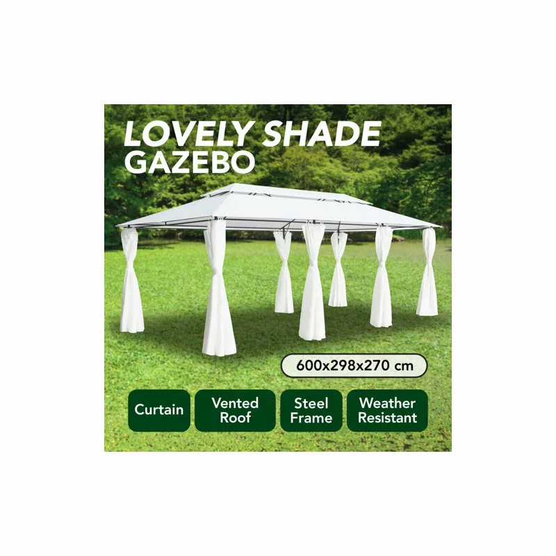 This gazebo is the perfect choice for any outdoor event, such as shows, weddings, BBQ parties, camping, and so on. It can be quickly installed in your backyard to provide a large and lovely sunshade retreat for your family and guests. This practical party tent is strong and durable, thanks to its tubular steel frame. The protective top, together with the detachable drapes, are both made of exceptional polyester fabric with PA coating, which is UV-resistant, and thus ideally suitable for outdoor use! The side panels are a great addition to this gazebo, as they will allow you to enjoy a peaceful night outdoors, without being bothered by insects. Besides, this beautiful outdoor shelter is quick and easy to assemble. NOTE: This product should NEVER be used under bad weather, such as strong wind, heavy rain, snow, storm, etc.