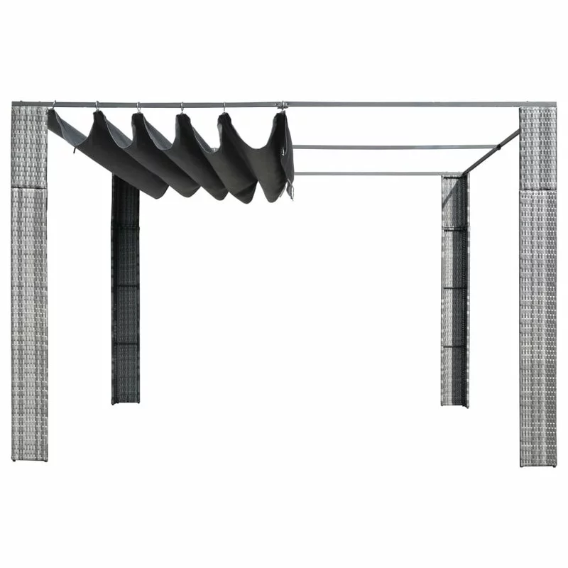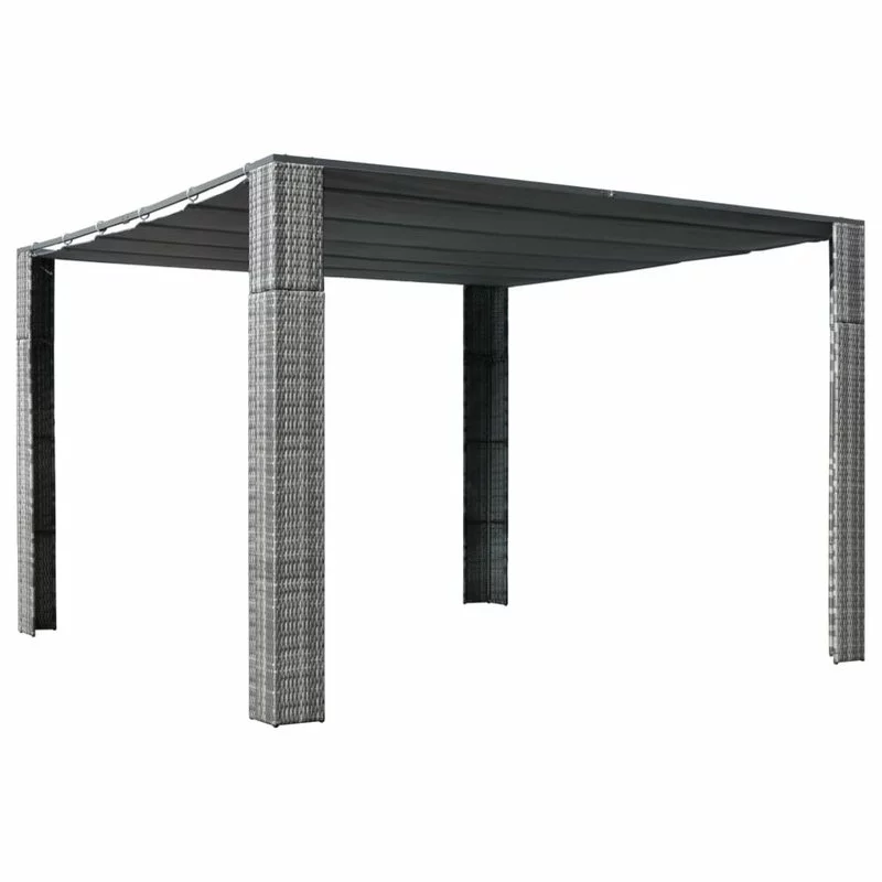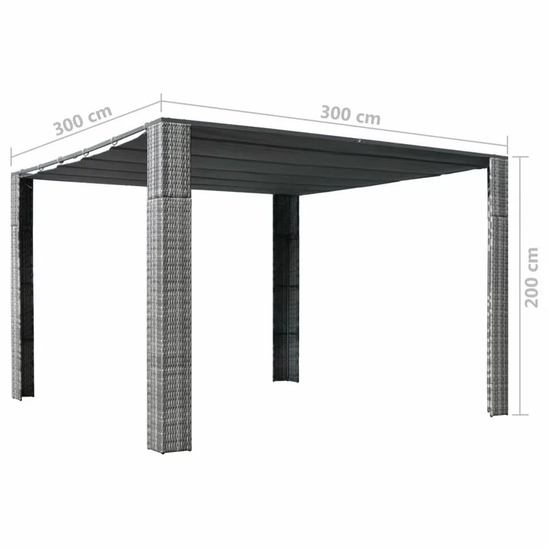 This stylish gazebo will not only make a great addition to your outdoor living space but also keep your family and guests cool and shaded on sunny days. Thanks to the PE rattan, this gazebo is easy to clean, hard-wearing and suitable for daily outdoor use. The powder-coated steel frames make the tent sturdy and stable. The sliding canopy provides good protection against the sun and rain as well as keeps them from spoiling the fun at family gatherings, barbecues, afternoon picnics, and birthday parties. NOTE: This product should NEVER be used under bad weather, such as strong wind, heavy rain, snow, storm, etc.
