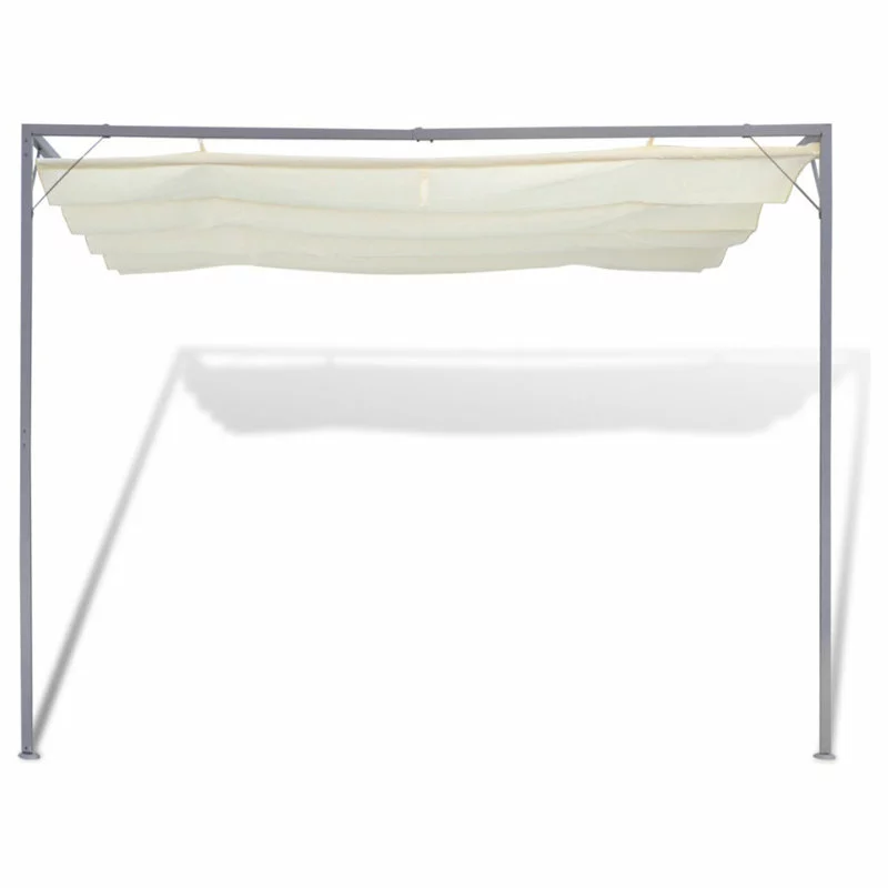 With this gazebo you and your family can enjoy any social gathering and remain sheltered from the elements. This gazebo is suitable for all types of weather; its retractable roof protects you from harmful UV rays and also from the rain to keep you dry. This gazebo is manufactured with a powder-coated steel frame and a 100% polyester weather-resistant cover. Intended to be fastened to a wall. Note: Please use a water-resistant spray to ensure the gazebo remains weather-resistant. NOTE: This product should NEVER be used under bad weather, such as strong wind, heavy rain, snow, storm, etc.