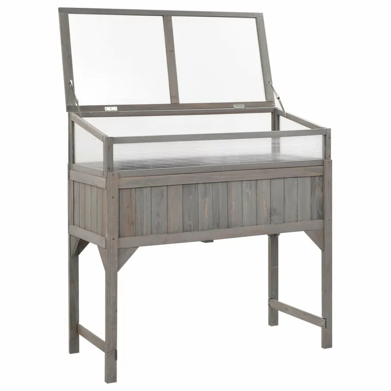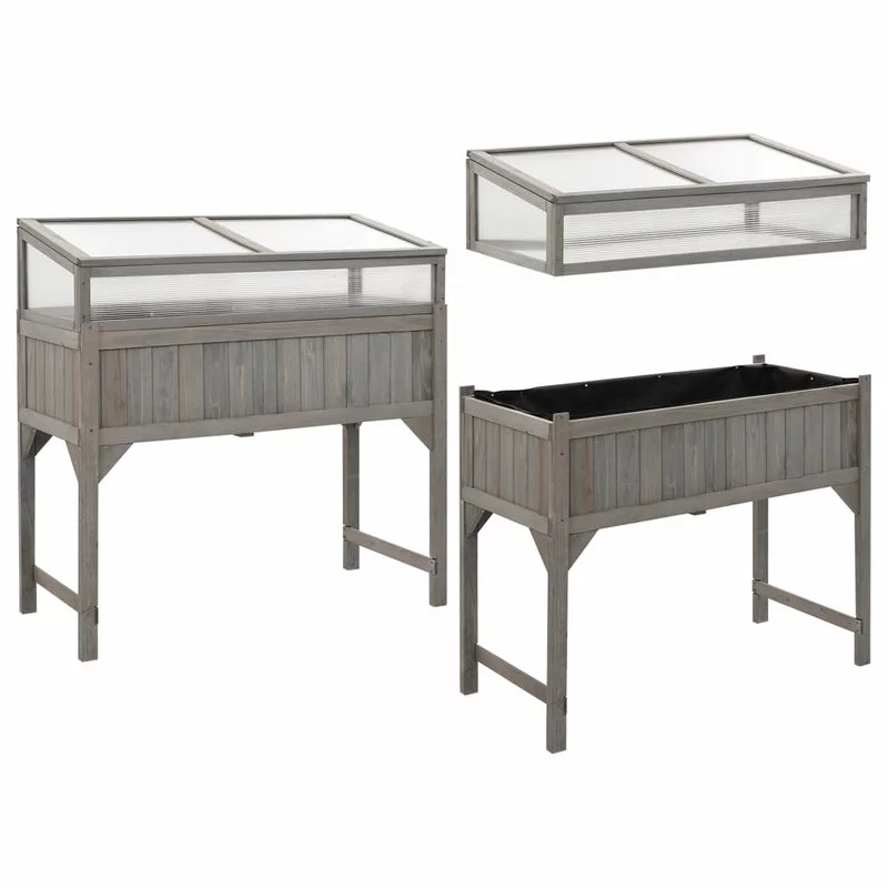 This raised bed with greenhouse is ideal for organizing your plants and decorating your garden or patio! The garden planter is made of solid fir wood, making it weather-resistant and ensuring lasting use in outdoor places. It features a greenhouse on the top, which offers warmth and protection for plants in cold weather. Display your favorite flower or plants beautifully with this wooden raised planter! Please note that wood is a natural product and may show imperfections.