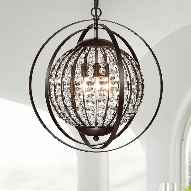 Update your home with this Marielle pendant light that features an antique bronze metal with globe crystal shade for an industrial look. This pendant light has three bulbs that provide ample multi-directional lighting to any room. Made from crystal and metal, this fixture casts light in multiple directions, illuminating a wide area.