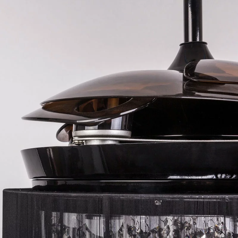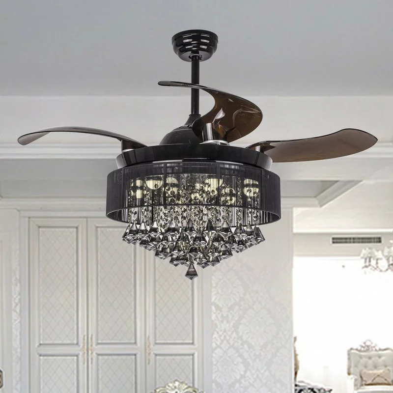 - DESIGN: It is a better combination of a Ceiling fan and LED chandelier. The 4 retractable acrylic blade with black finish offer elegance to your home decor, saving space.