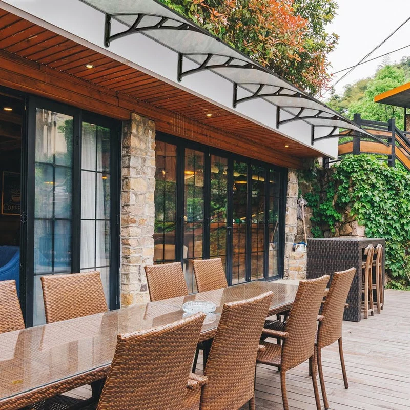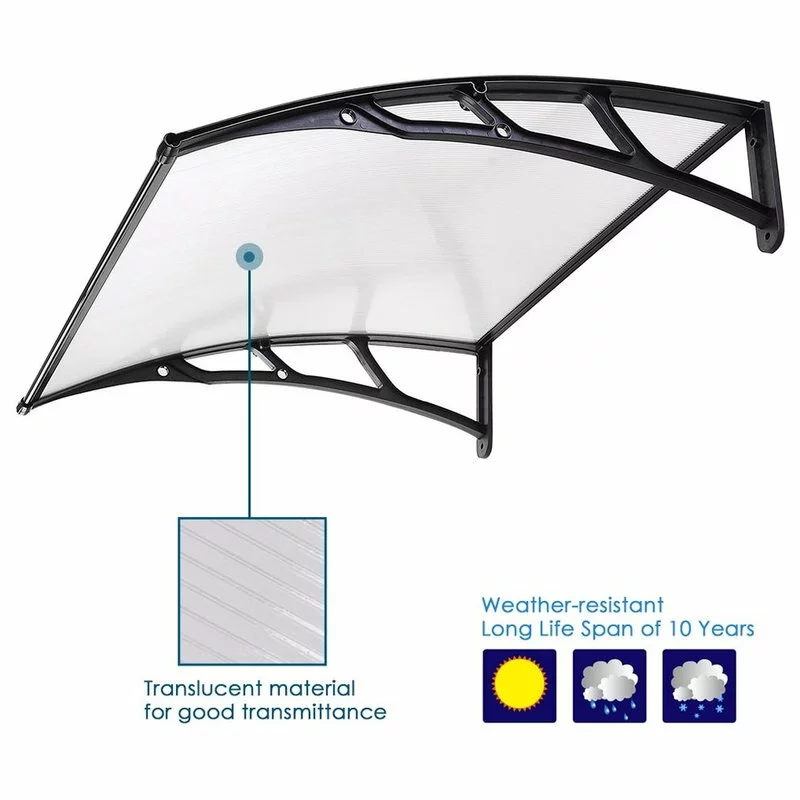 - Versatile Transparent Shelter – 40″x40″ awning features transparent color for providing sufficient light and clear sight when reading or doing outdoor activities, and effectively protects your door, window, furniture and floor from UV rays, rain & light snow; Ideal to use in patio, forecourt, garden or balcony