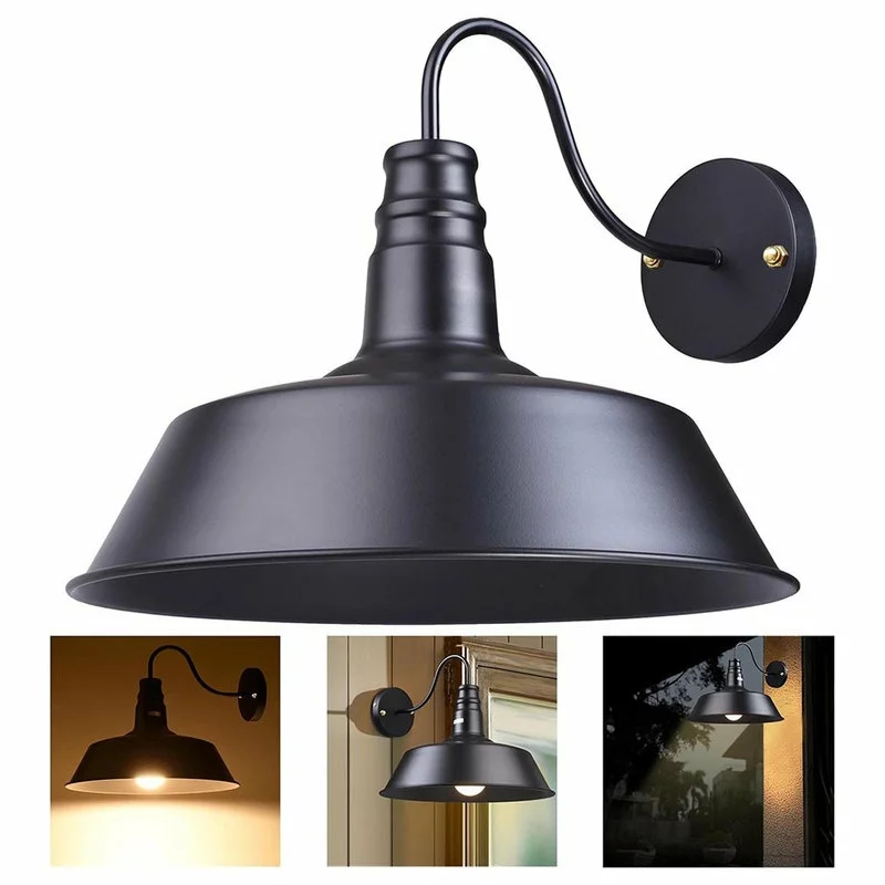 - Industrial Retro Style – 14″ Wall mounted light features classic black dome lampshade and vintage gooseneck hanging rod for bringing industrial style for home and commercial use, perfect for creating retro atmosphere and showing your unique taste